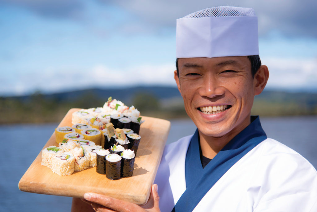 Masaaki’s love of sushi making began as a young boy, learning from his grandmother and fisherman father in rural Japan. Raised in a small village south of Osaka, Tasmania’s valleys and rivers have a feel familiar to his childhood.