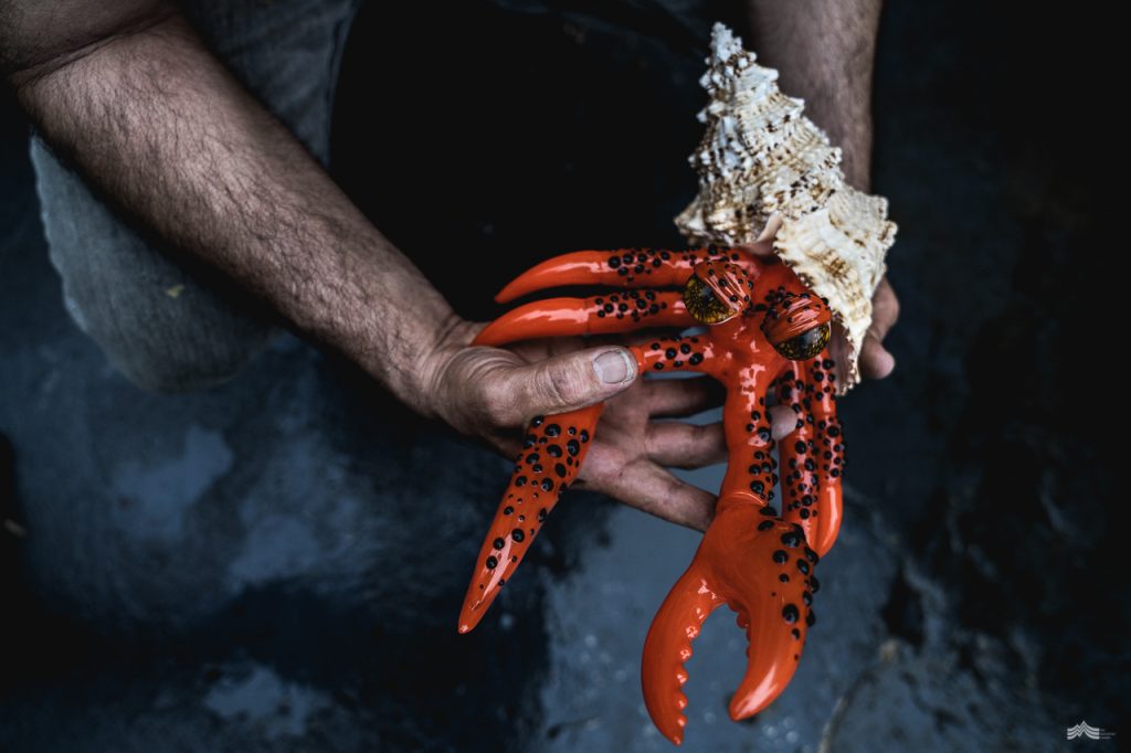 A personal favourite is a mighty red hermit crab. “It’s very challenging to create a piece such as this that is totally hollow,” Craig explains. “I’m really pleased with how he turned out, there are a lot of facets to him. I’ll be very interested to see where he ends up.”