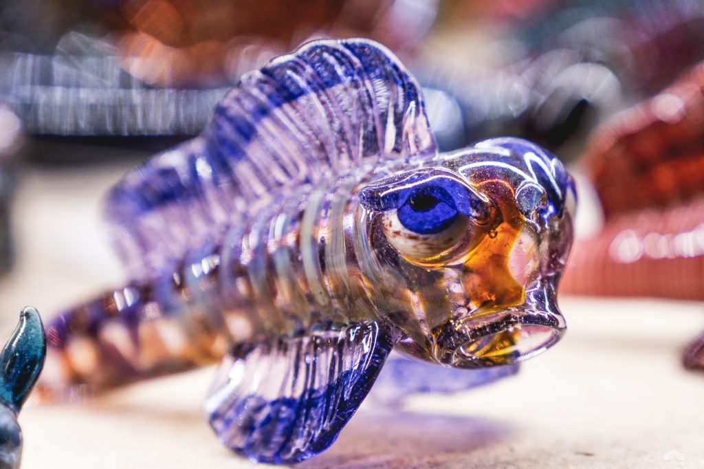 A treasure trove of quirky characters dwell deep within. They’re quiet residents, but outlandishly loud in colour. Shoals of vibrant mudskippers, consortiums of hermit crabs and shivers of striking sharks. With a penchant for perfection and an eye for minute detail, Craig delves deep into technique until he hones the peculiar beasties that emerge from within his flame.