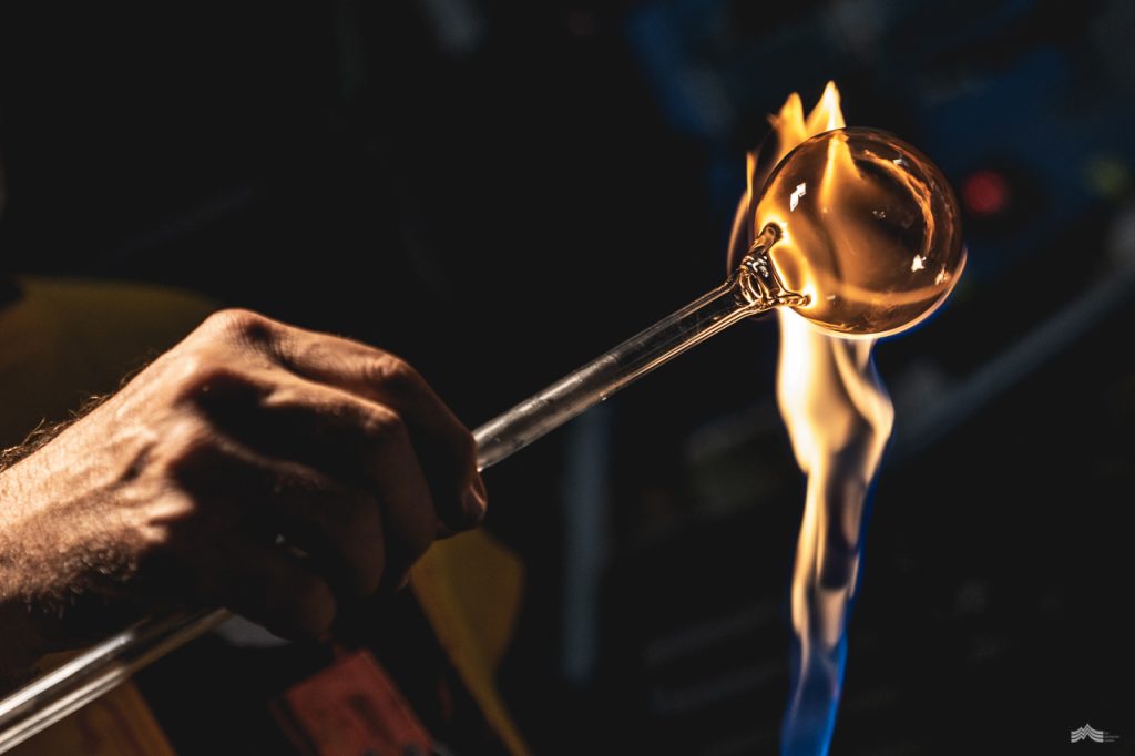 Watching Craig work with the torch is mesmerising. As he expertly rotates a glass rod over a hot blue flame and applies pressure by blowing into the rod, a gentle bubble begins to form. “It’s a juggling game of heat rising and gravity pulling down, that’s why the glass is always rotated,” he explains, his dexterity making it look effortless. “Transparency definitely adds an extra dimension to glass and I love the scope that that adds…the ability to play with light. The fact that glass acts a lot like water is also what draws me to it.”