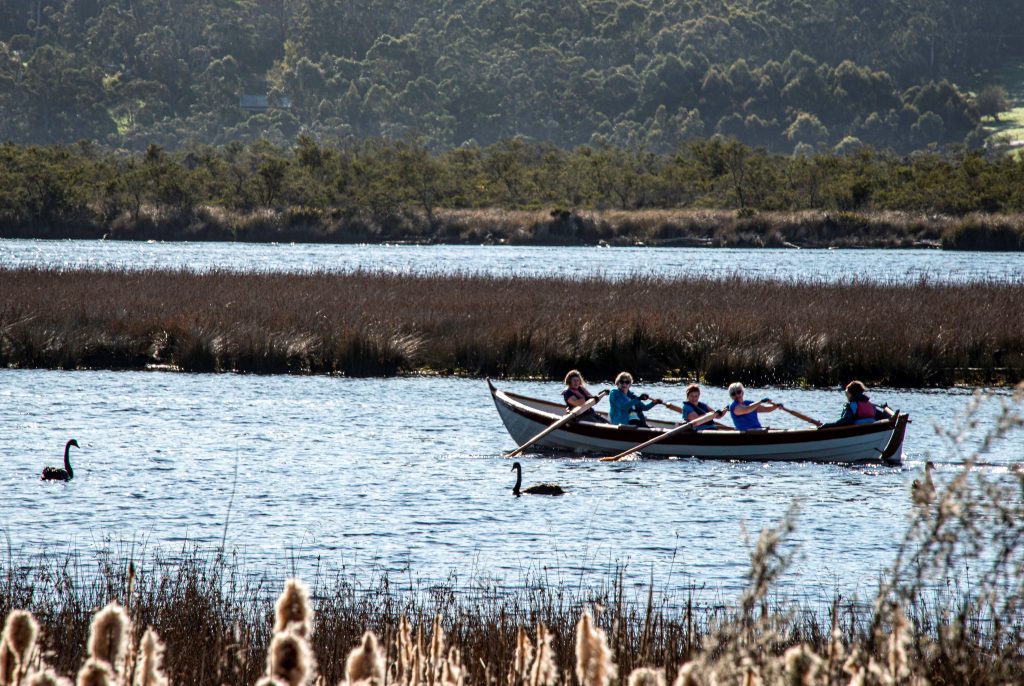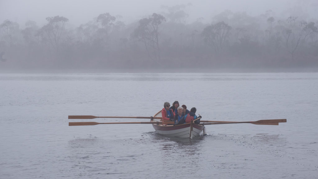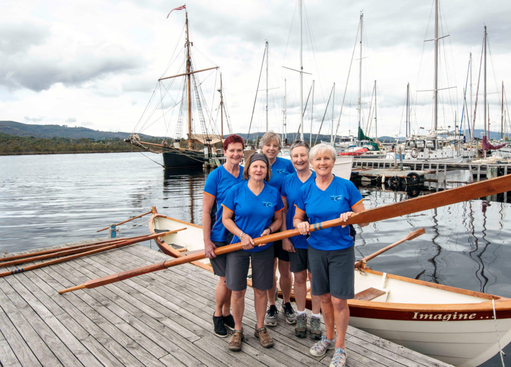 The dark waters of the Huon River flow from deep in the Tasmanian wilderness, beneath the bridge at Huonville and past the river town of Franklin. There, near the boat-building sheds of the Wooden Boat Centre and The Living Boat Trust, you can often see an all-female crew of world-beating athletes training on the river, propelling a graceful craft named Imagine with long, powerful strokes, rowing in perfect unison as they strive towards more success in the sport of international St Ayles skiff racing.
