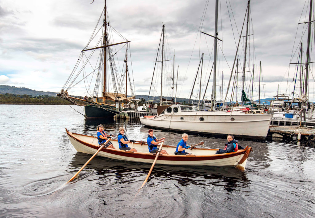 Imagine, the first skiff launched on the Huon River, was built by another group of passionate women at the Living Boat Trust, under the guidance of shipwright Peter Laidlaw and funded by a women’s health grant. The boat-builders became known as WOW – Women On Water. The Living Boat Trust was founded in 1998 and is dedicated to keeping Tasmania’s marine heritage alive.