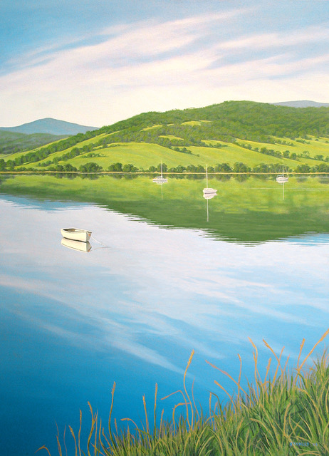 I love the subtle tones and colours in both water and sky so have a great love for landscape. Particularly early morning and late afternoon when the shadows are longer and there is more colour in the sky. I enjoy creating atmosphere and depth in my work as I want to hold the viewer’s gaze and get them to look all around the painting, discovering things they might not have seen initially.