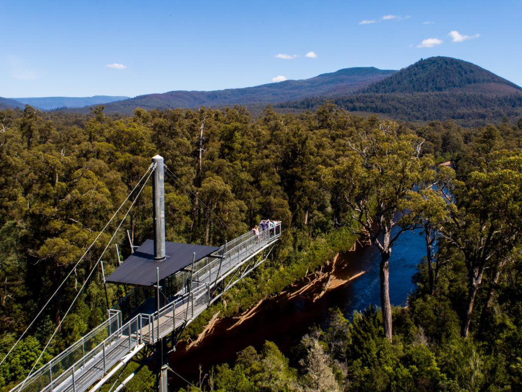 You can also feel the power of nature as the Huon and Picton Rivers rush beneath your feet, on two swinging bridges suspended from the riverbanks.