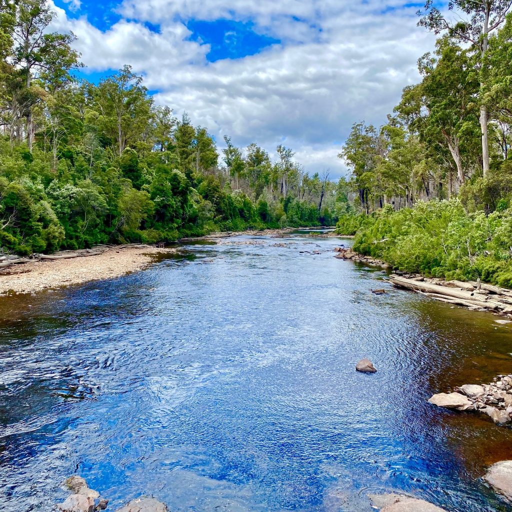 Spectacular views showcasing the meeting of the mighty Huon and Picton Rivers can be enjoyed. In the distance, peaks and beyond can be seen highlighting the edge of the wild southwest, Tasmania’s Wilderness World Heritage Area.