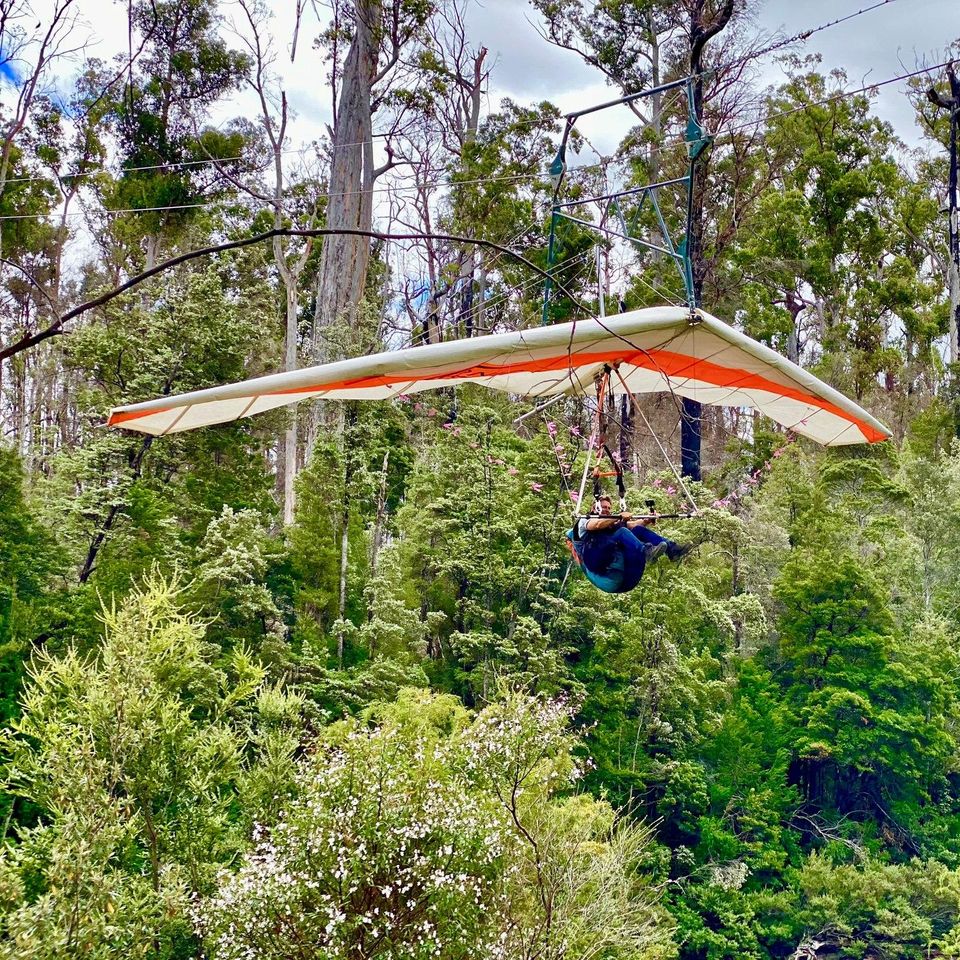 The securely cable-controlled hang glider whisks you from the forest floor, 250 metres across the Huon River, to a launching point 50 metres in the air – offering a thrilling 400-metre return glide across the Huon River.