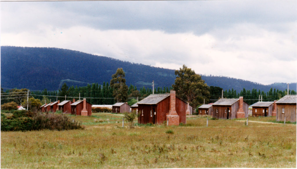 In Ranelagh, near Huonville, there was a much bigger assembly of huts. Mike Raine supplied the picture of them taken soon after his family moved to Kellaway Street in the 1980s. At that time the Raine house was surrounded by orchards on land mostly owned by the Frankcomb family.