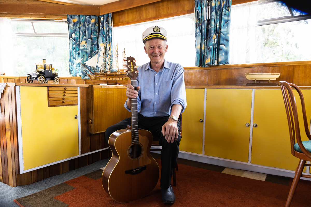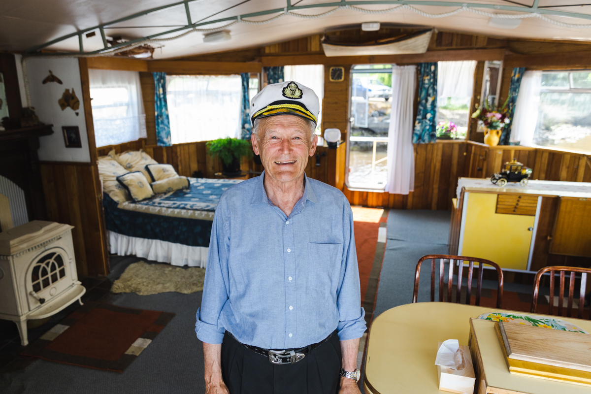 Maurice Baldock moved aboard his houseboat Stella 23 years ago and loves the nomadic freedom of life on the water. He is currently moored in Port Huon, in the Huon Valley.