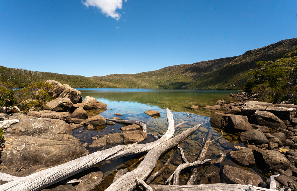 Eventually the trail passes through a drier eucalypt forest before opening onto the sub-alpine base below Lake Skinner. From here, a short and gradual climb will find you at the lake’s edge. Just before the lake, a large rock hollow is also passed, providing emergency shelter in poor weather.