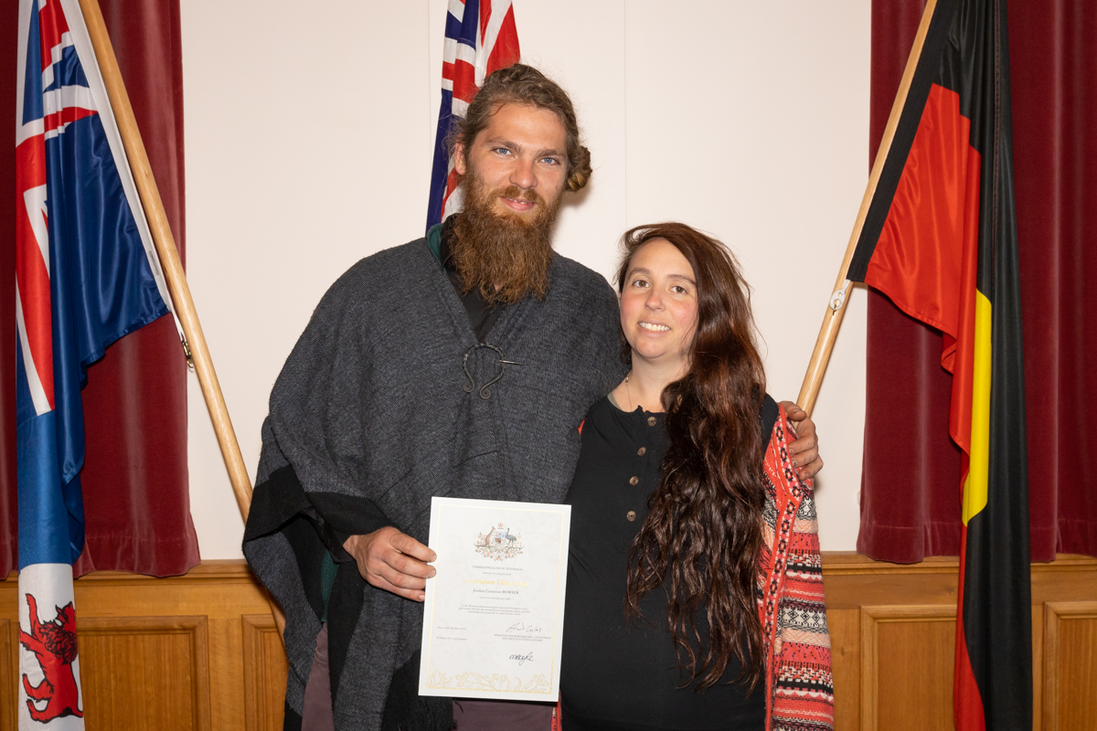 An intimate ceremony was held at the Huon Valley Council Chambers yesterday to welcome two new Australian citizens.